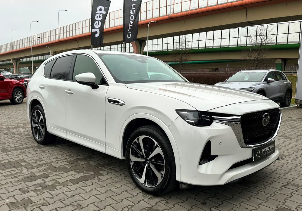 MAZDA CX60 z silnikiem w wersji wyposażenia TAKUMI z silnikiem Diesla 3.3 o mocy 254 KM z automatyczną skrzynią biegów, z fabryczną gwarancją do 2029 r. i dachem panoramicznym.