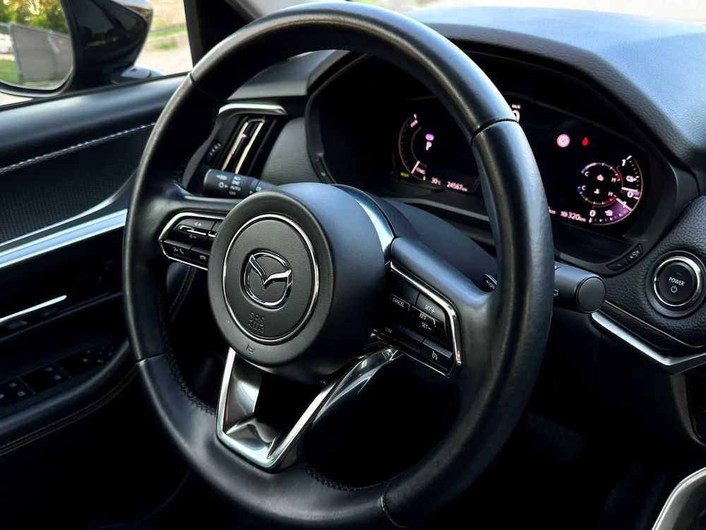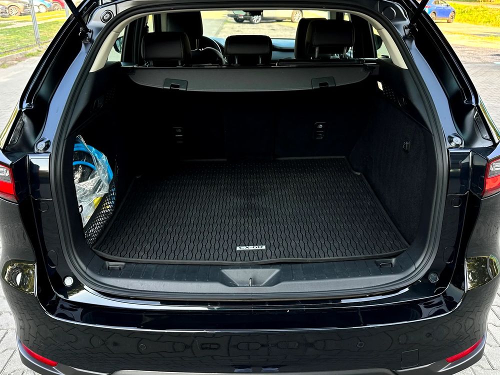 MAZDA CX-60 z hybrydowym silnikiem typu plug-in 2.5 o mocy 327KM w wersji wyposażenia Exclusive-Line z pakietem Comfort black.