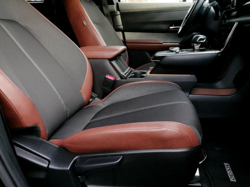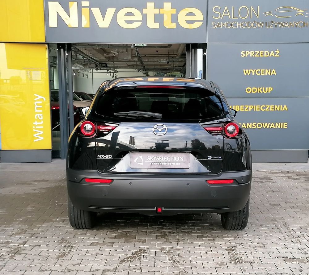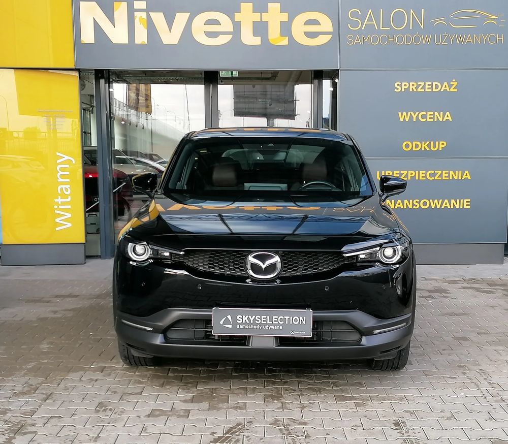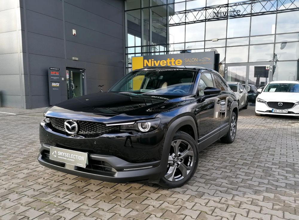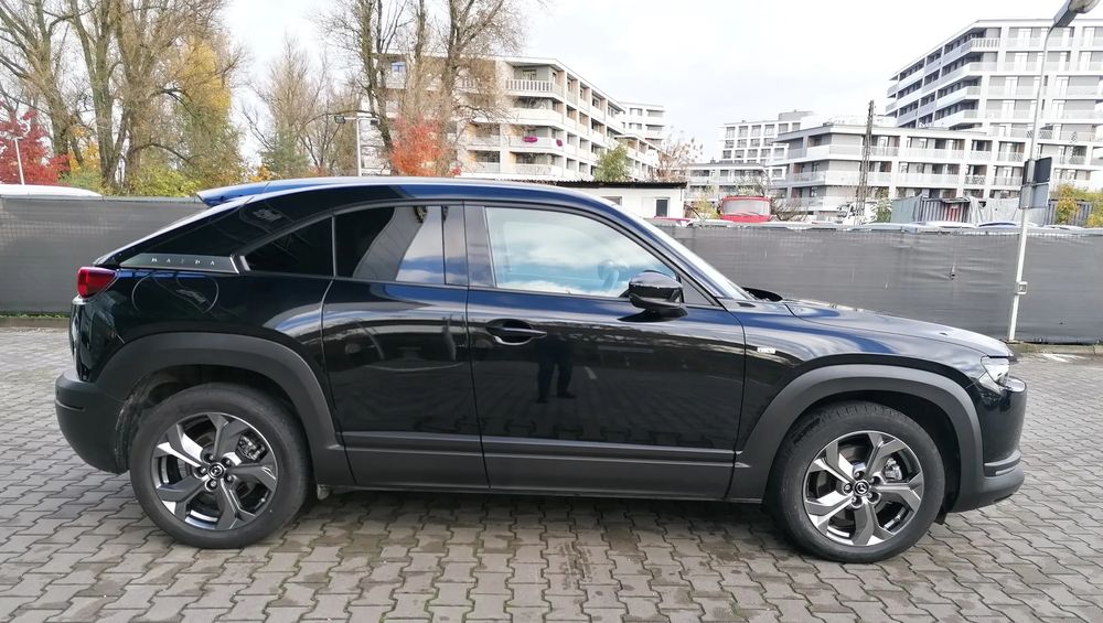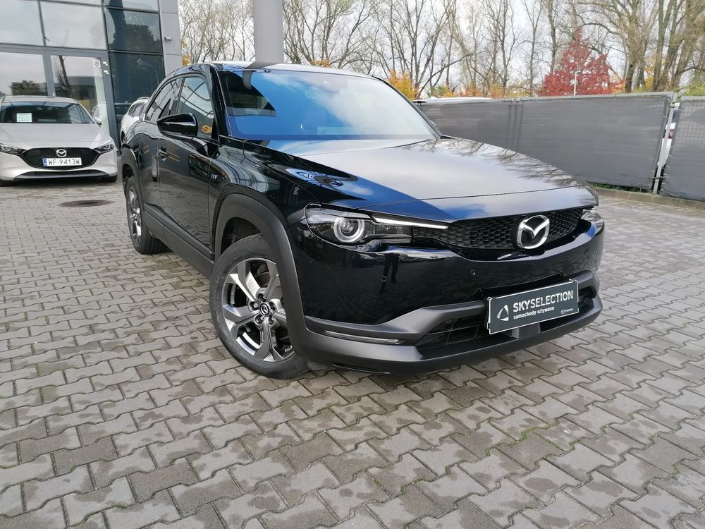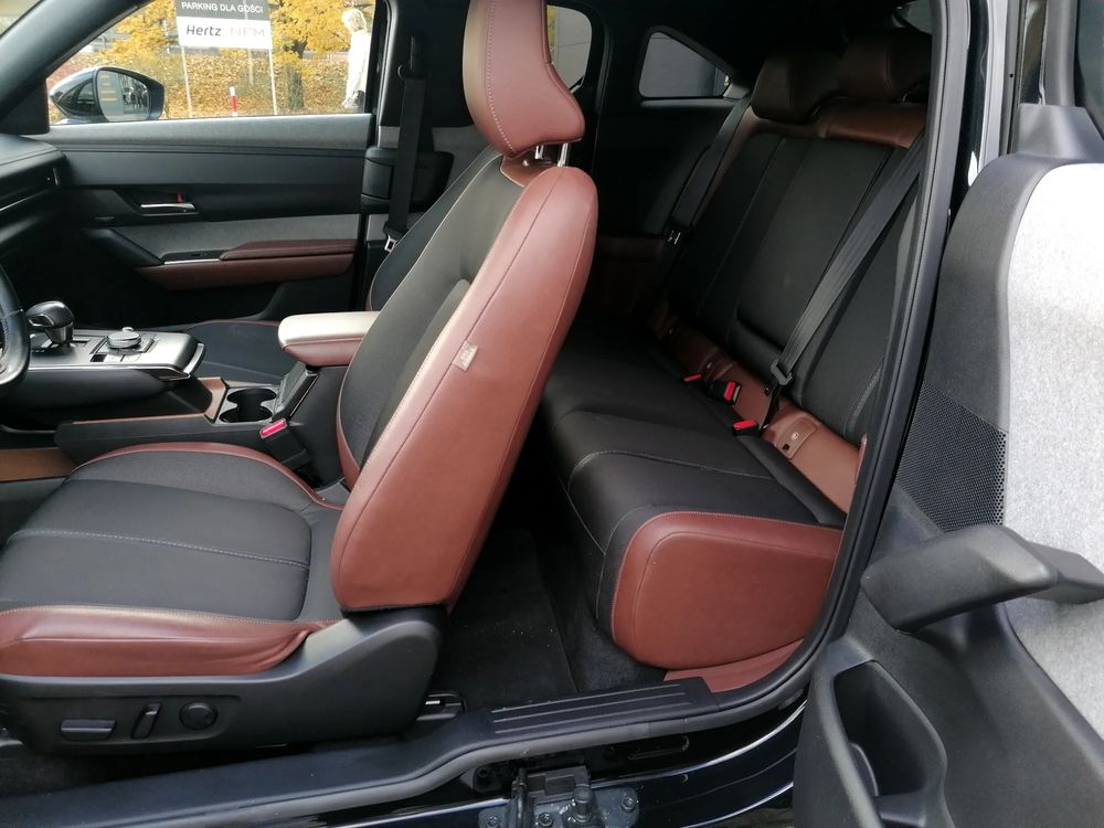 MAZDA MX-30 z silnikiem elektrycznym z automatyczną skrzynią biegów o mocy 145 KM w wersji wyposażenia MAKOTO + pakiet PREMIUM oraz wystrój Vintage