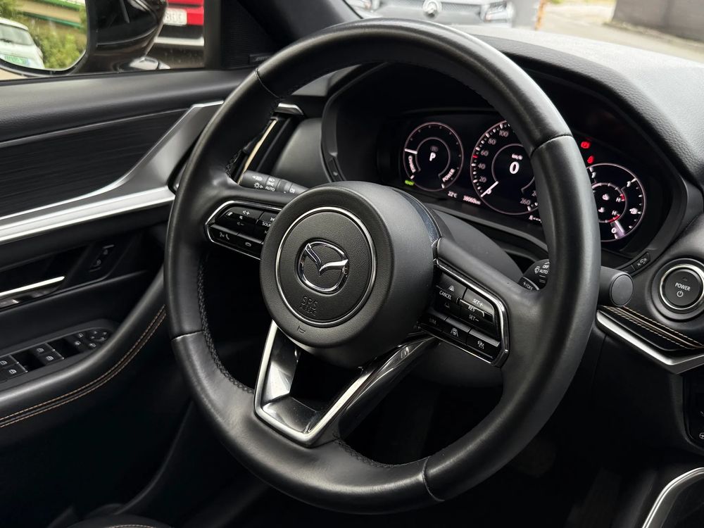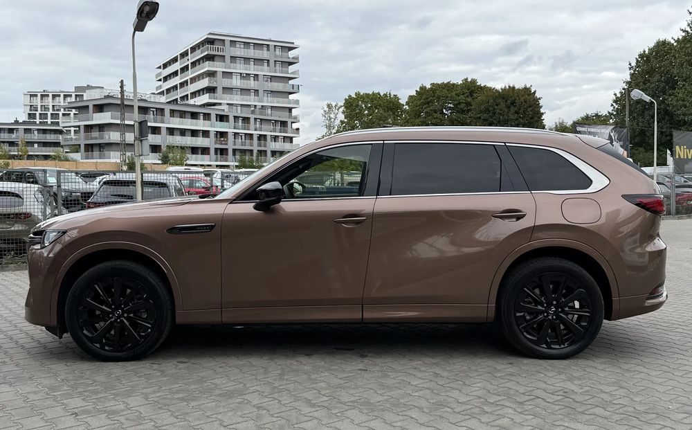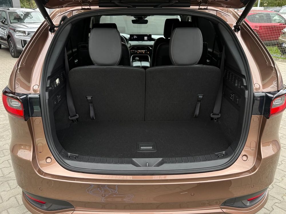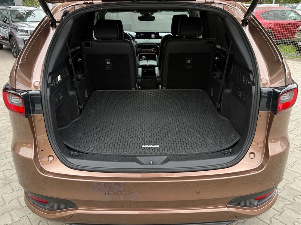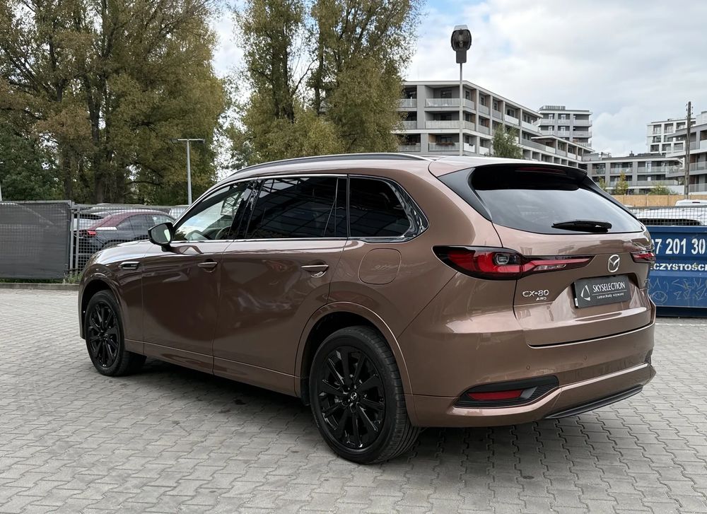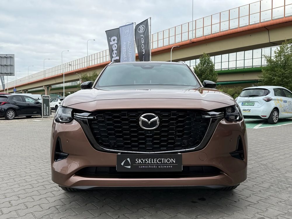 MAZDA CX-80 z silnikiem hybrydowym typu plug in o pojemności 2.5 i łącznej mocy 327 KM w wersji wyposażenia HOMURA PLUS w unikalnym kolorze MELTING COPPER M, w wersji 6 osobowej z fotelami kapitańskimi