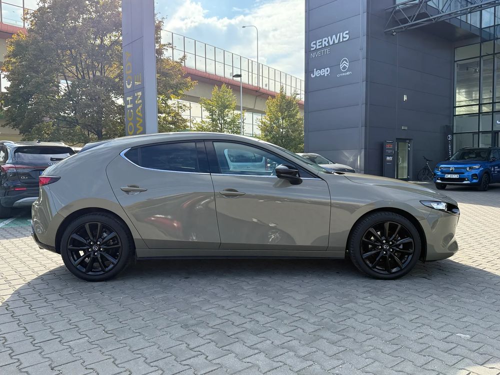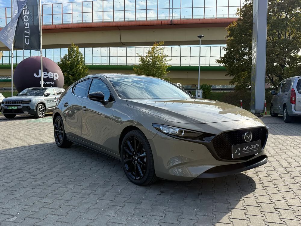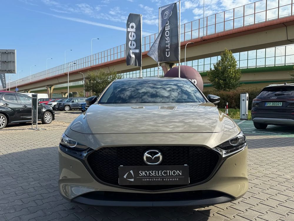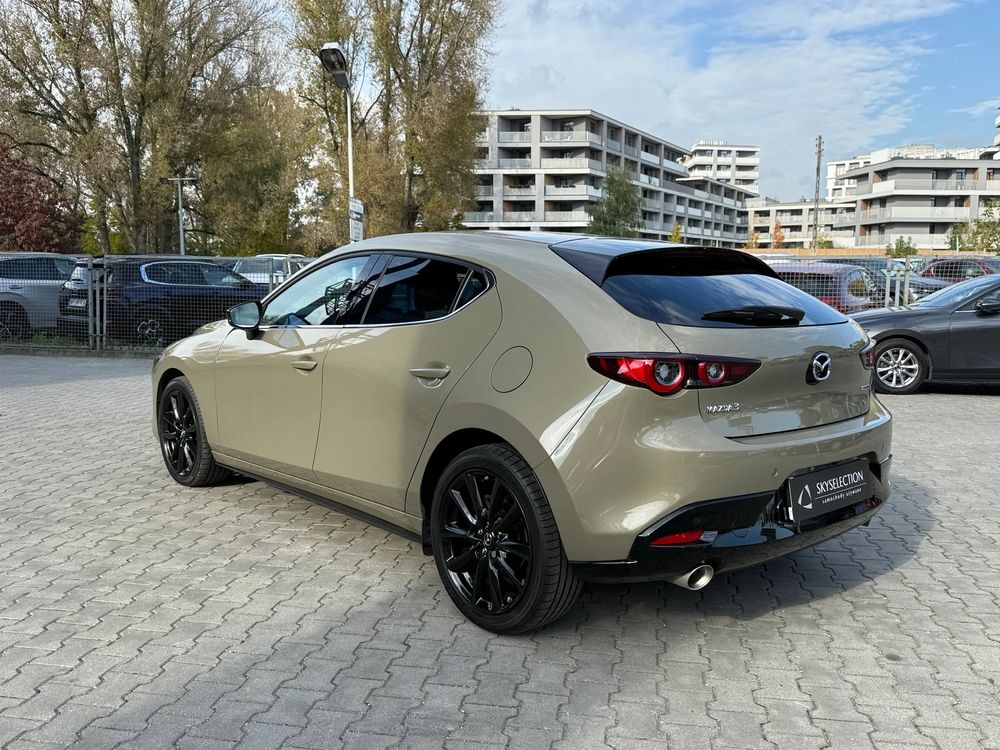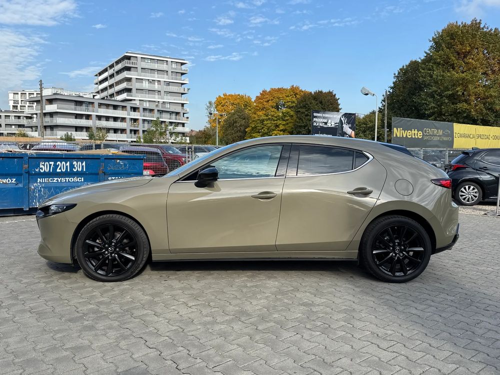 MAZDA 3 z silnikiem benzynowym 2.0 o mocy 186KM w wersji wyposażenia HOMURA w kolorze nadwozia Zircon Sand.