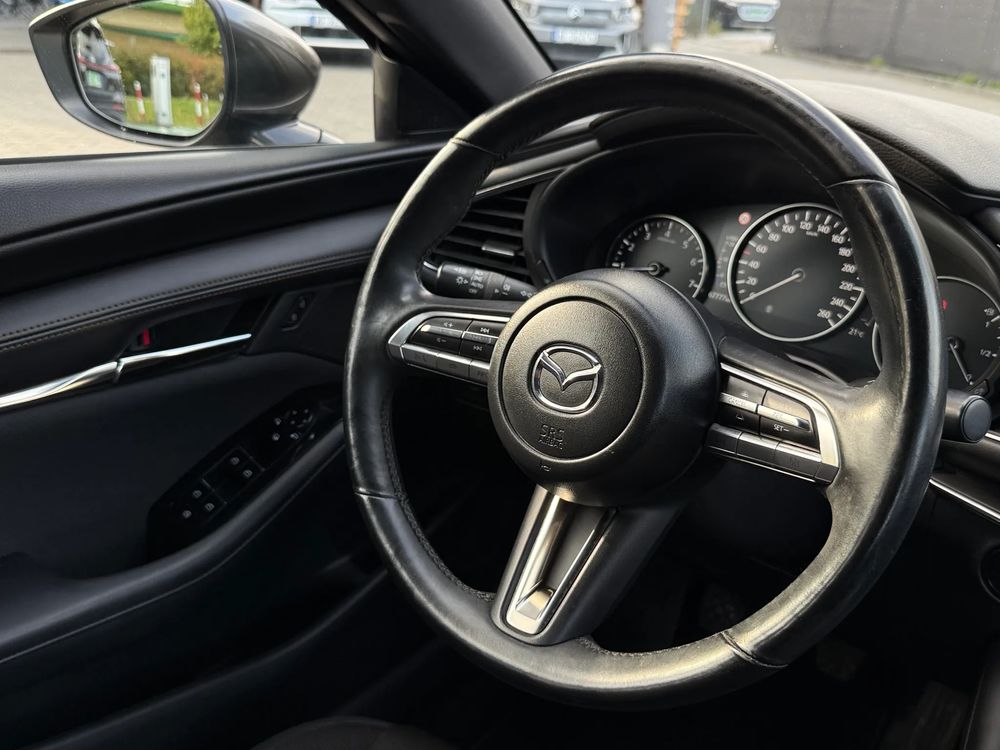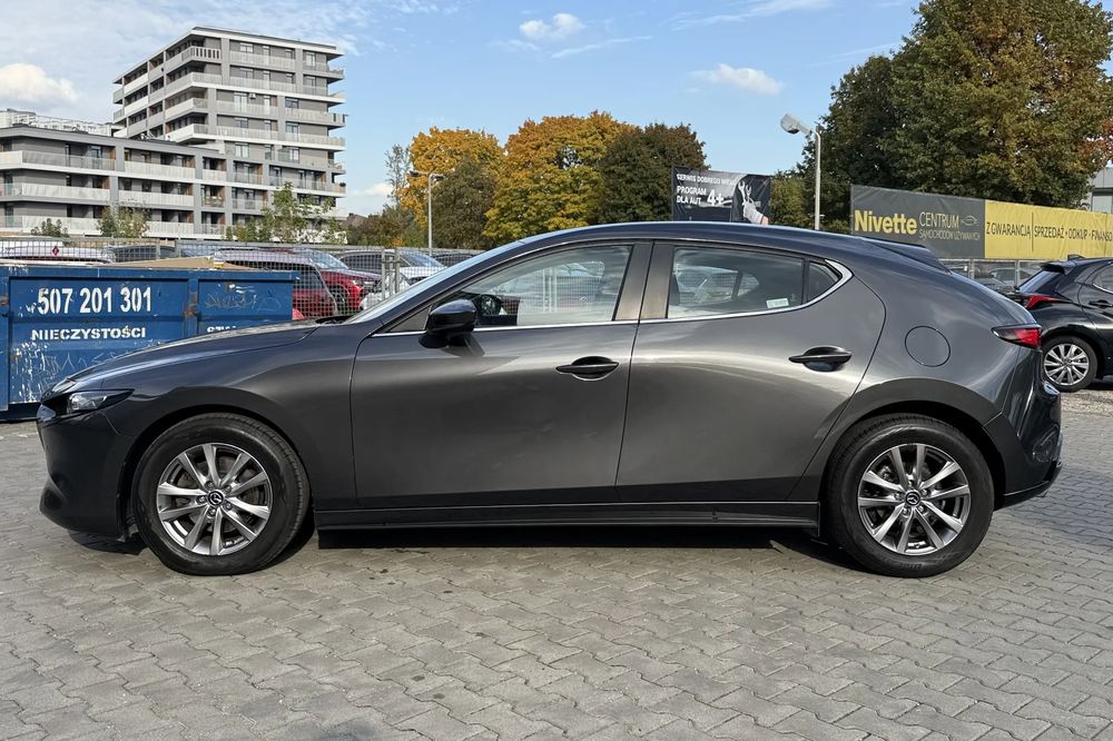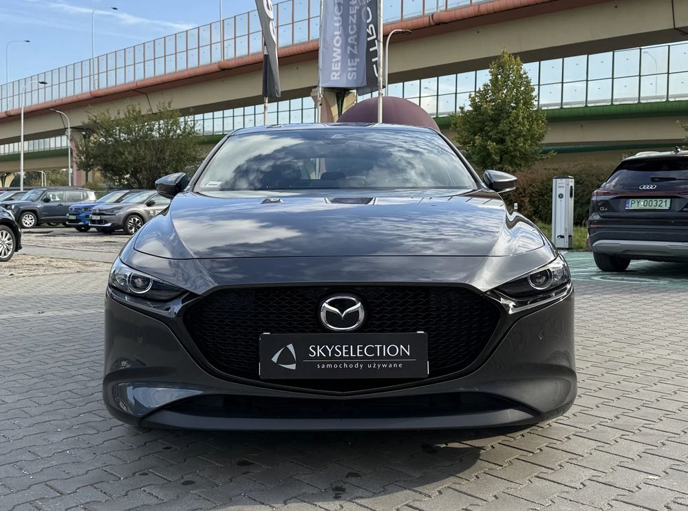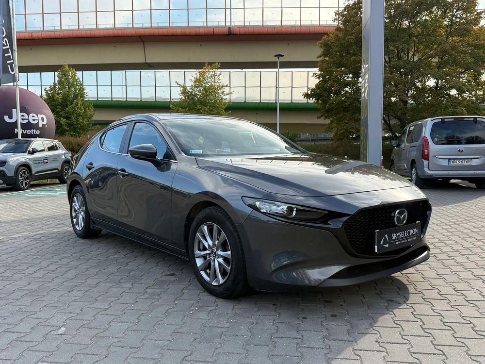 MAZDA 3 z 2019 roku, hybrydowa, z manualną skrzynią biegów. Komfortowy i nowoczesny hatchback, idealny do codziennego użytkowania, oferujący bogate wyposażenie i wysoki poziom bezpieczeństwa.