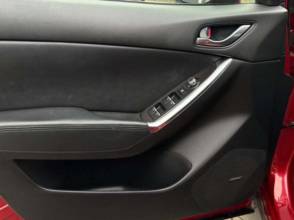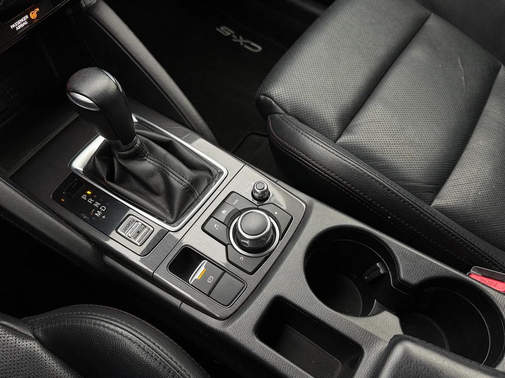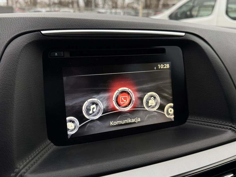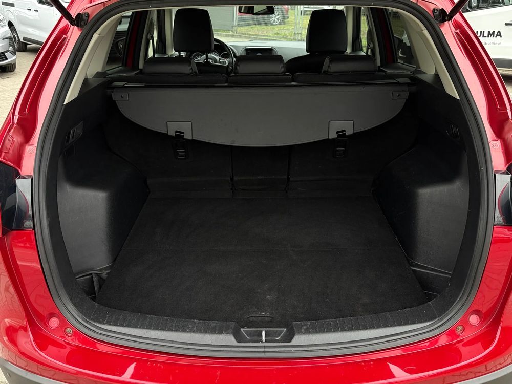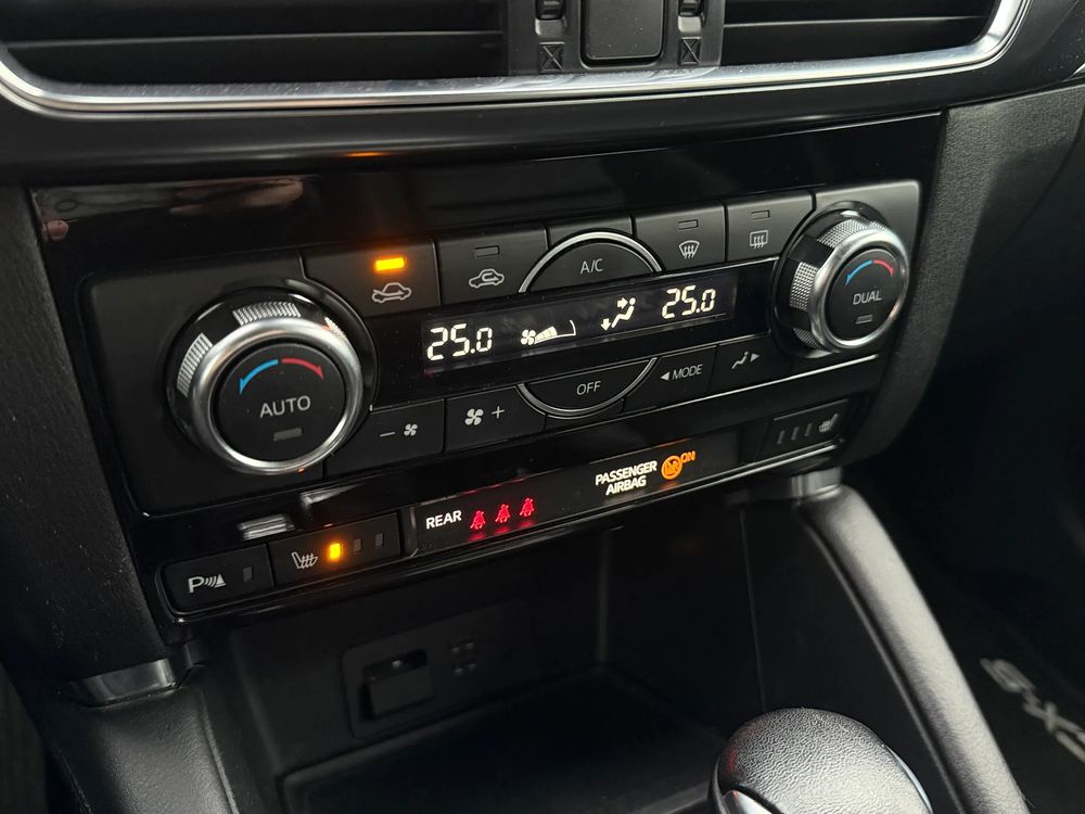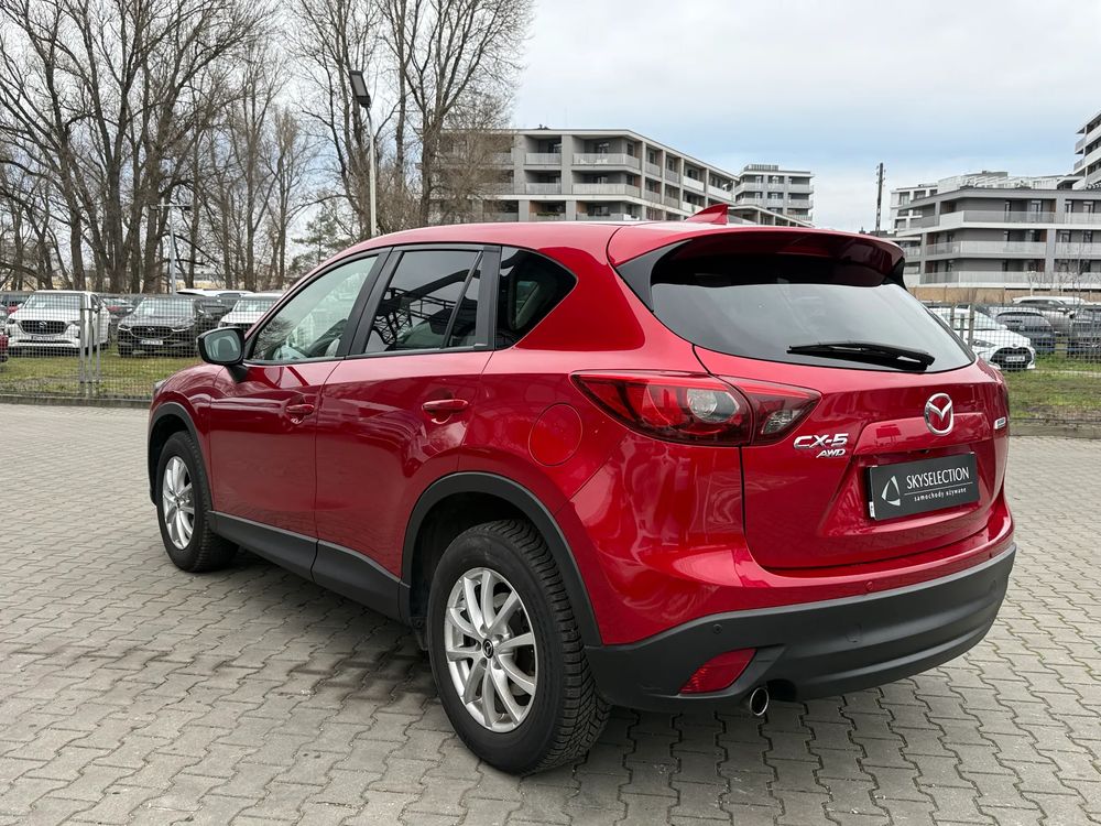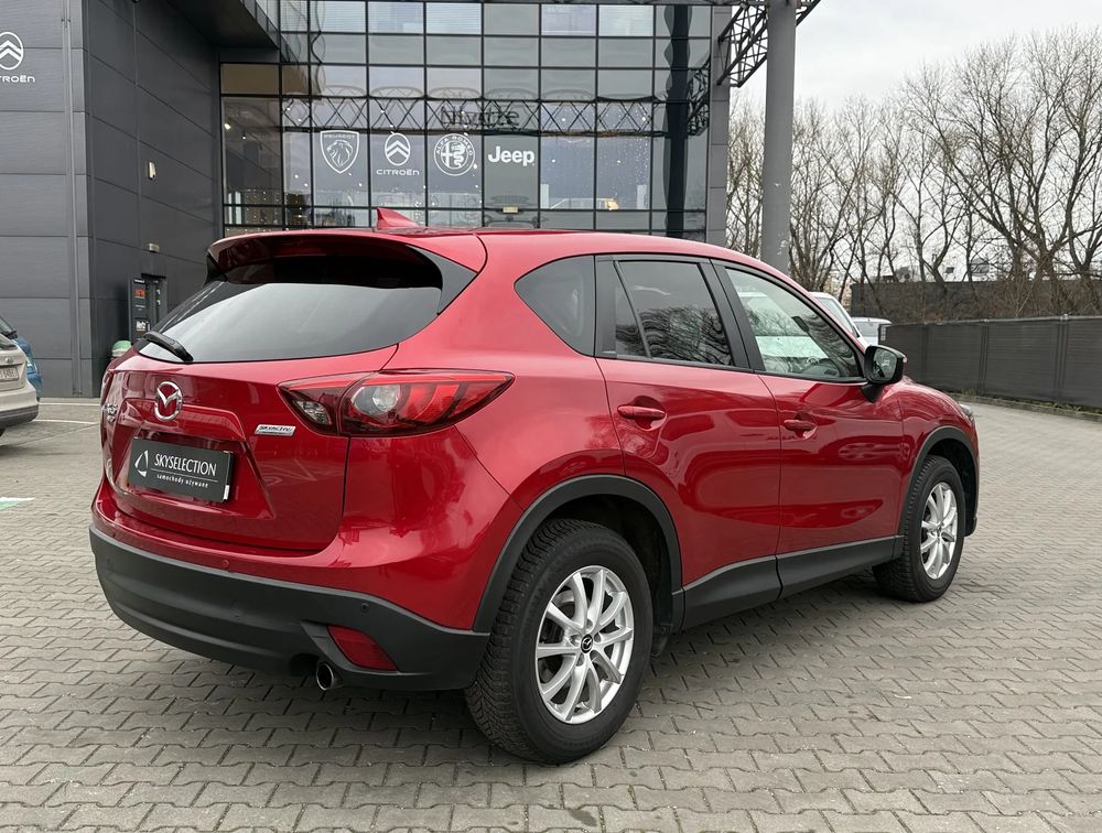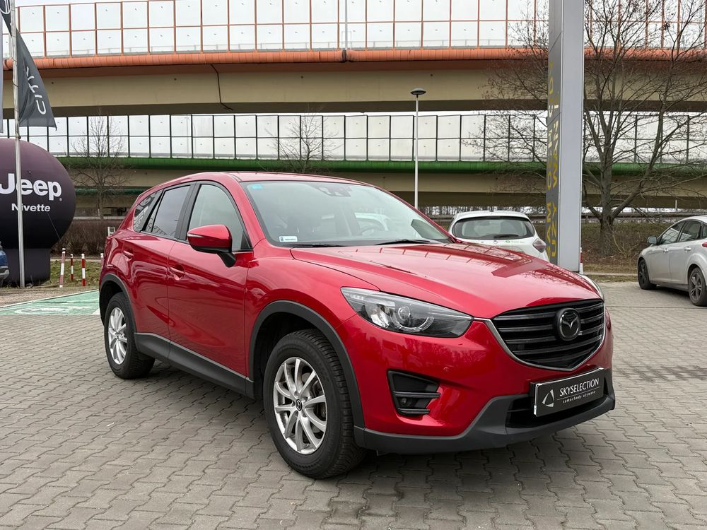 MAZDA CX-5 z 2016 roku, silnik benzynowy 2.5 o mocy 192 KM. z napędem na cztery koła AWD w wersji wyposażenia SKY PASSION z czarnymi skórzanymi fotelami, jest to przestronny SUV z 5 miejscami, idealny na rodzinne wyjazdy i codzienne użytkowanie.