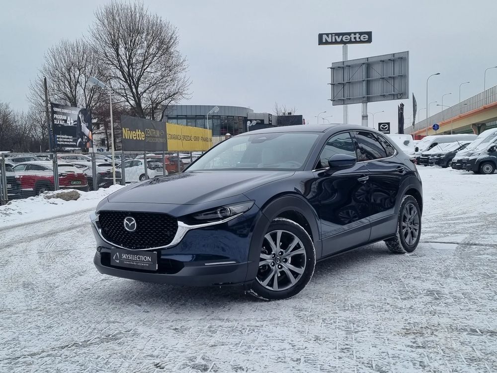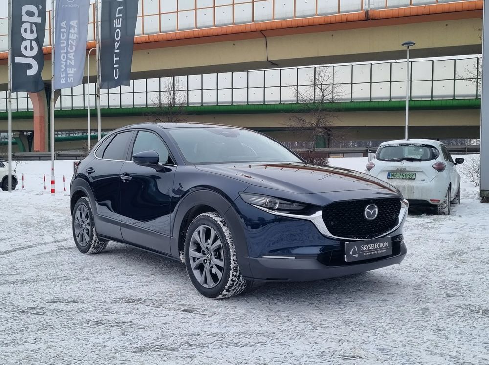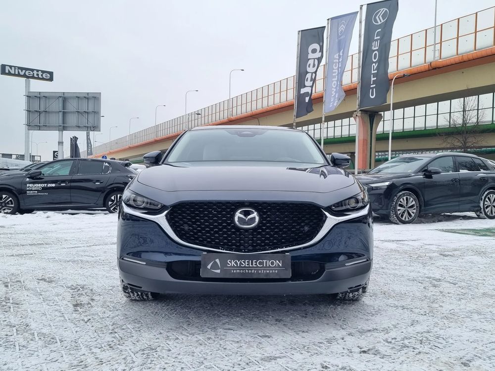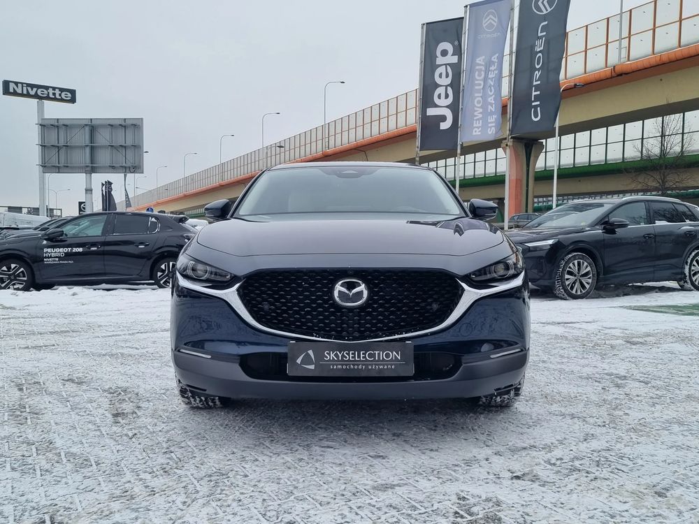 MAZDA CX-30 z 2024 roku, miękka hybryda, silnik 2.0 o mocy 186 KM, automatyczna skrzynia biegów, napęd na przednie koła.