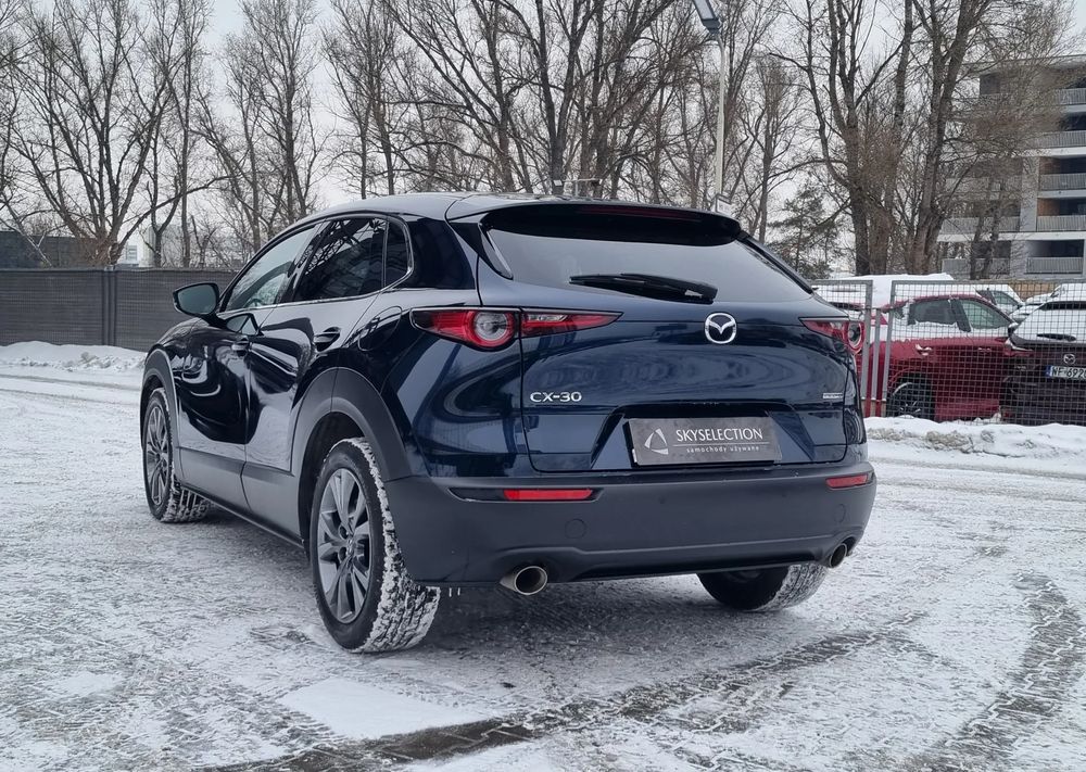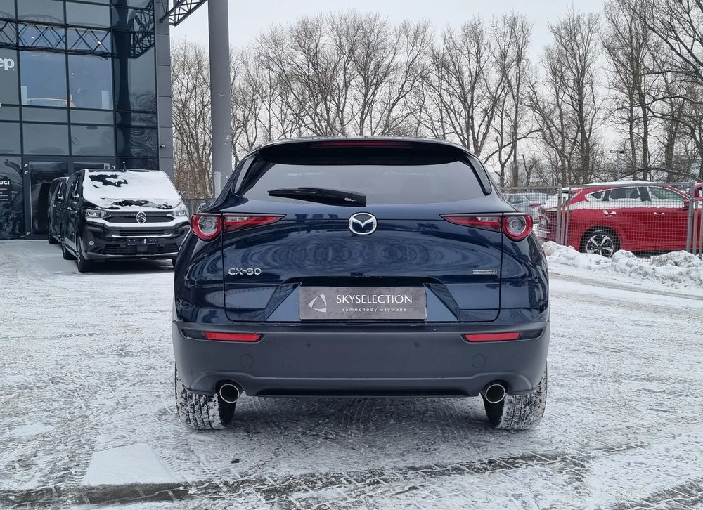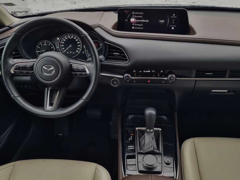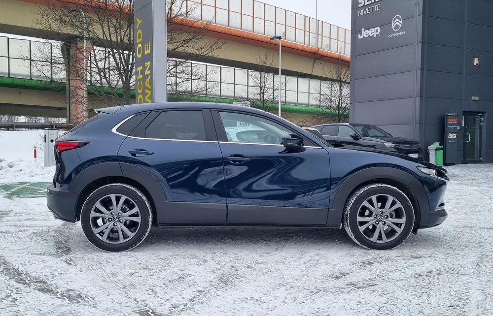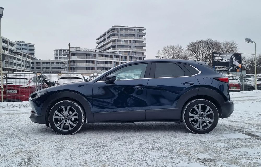 MAZDA CX-30 z 2024 roku, miękka hybryda, silnik 2.0 o mocy 186 KM, automatyczna skrzynia biegów, napęd na przednie koła.
