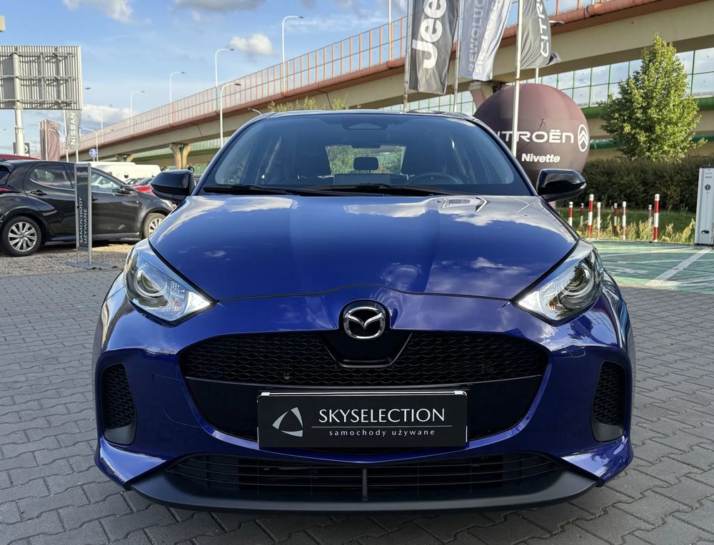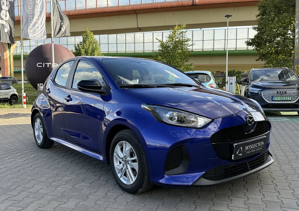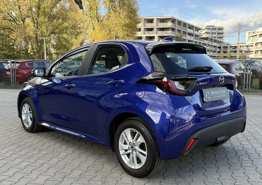 MAZDA 2 HYBRID z silnikiem benzynowym + hybryda 1.5 o łącznej mocy 116 KM w wersji wyposażenia CENTER LINE z automatyczną skrzynią biegów w niespotykanym kolorze Glass Blue.